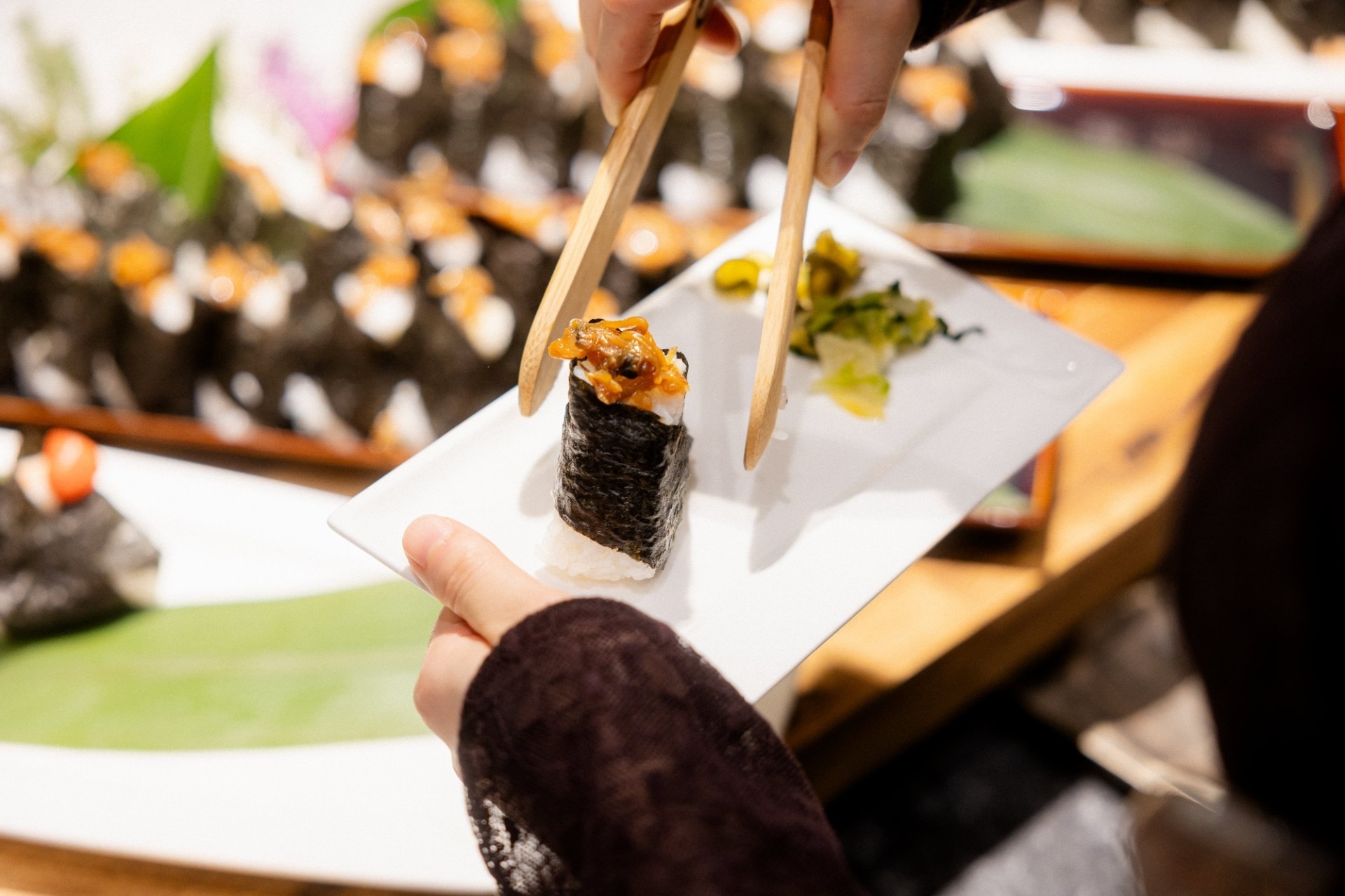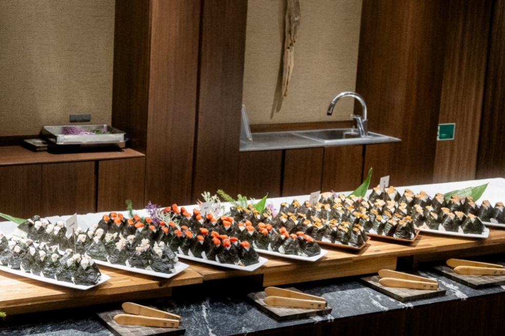 おにぎりに明太子をのせるセレモニーを
