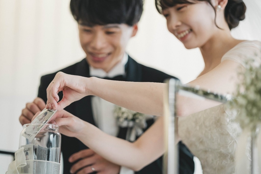 挙式での結婚証明はチェキボトル