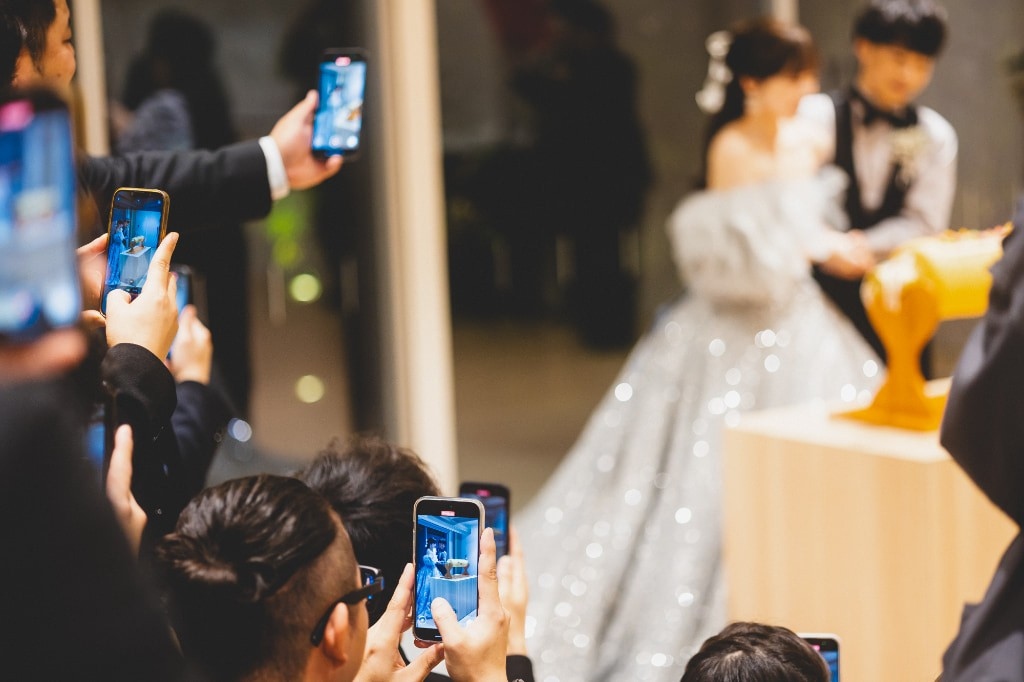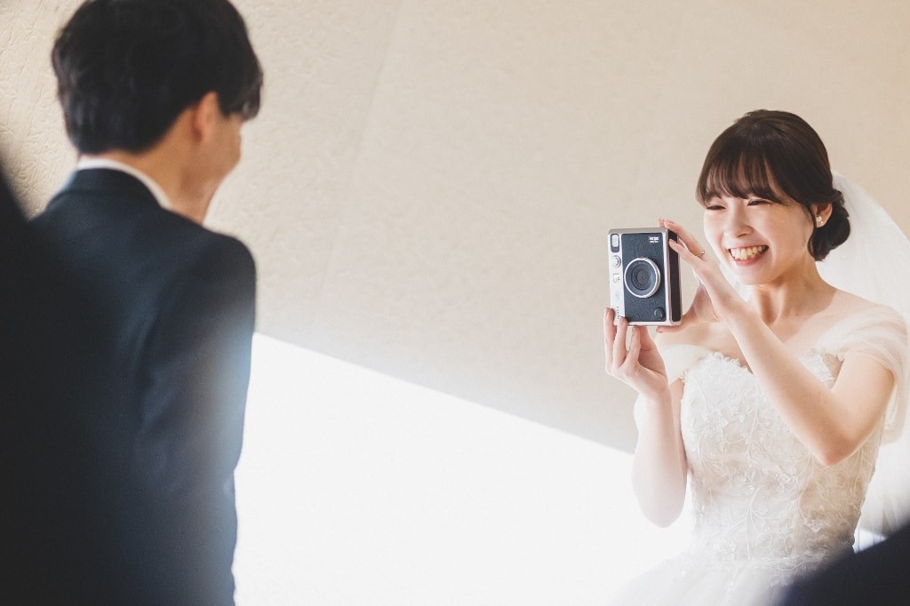 挙式でおふたりもお互いのチェキを撮りあい